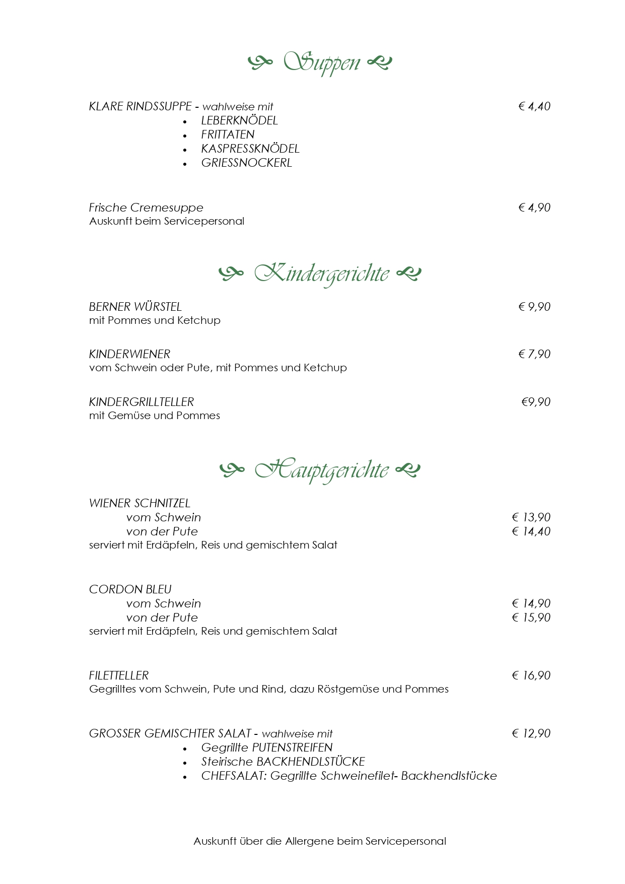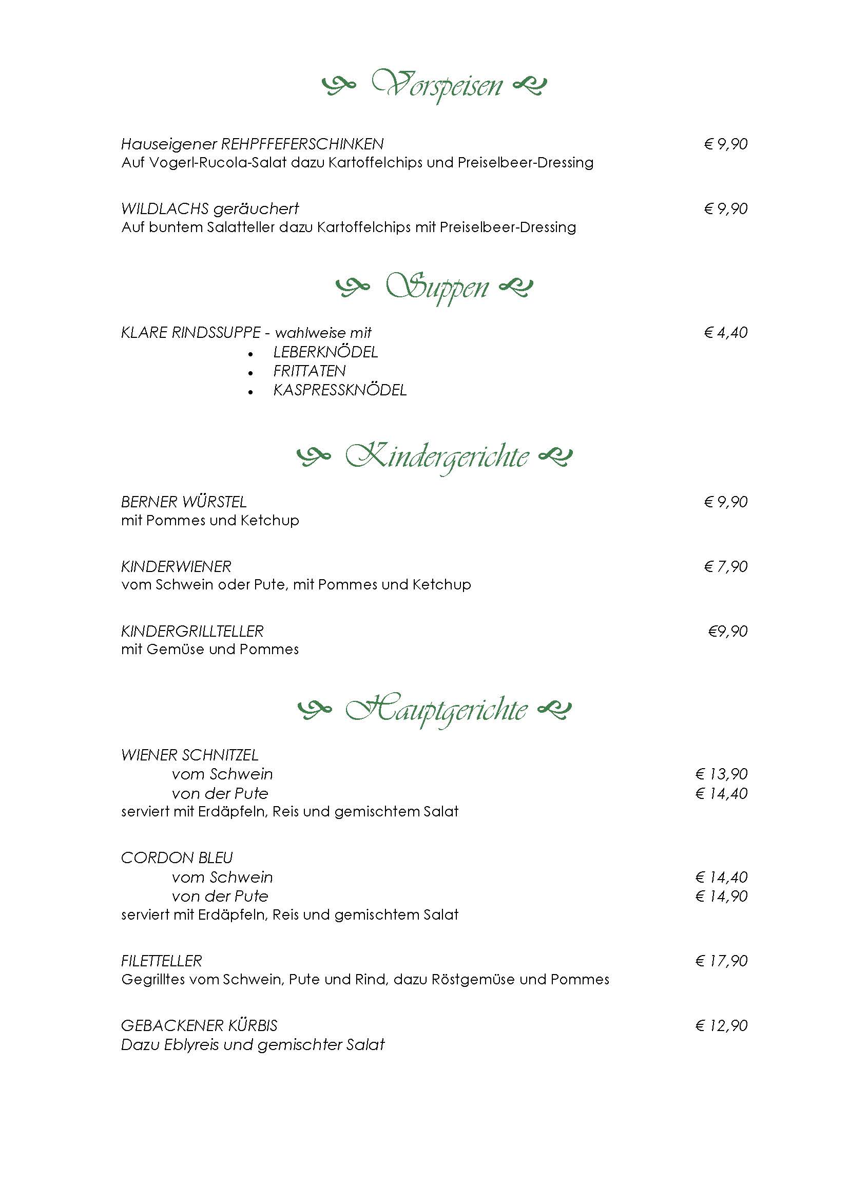 Unsere Speisekarte beim Gasthaus zum Geiger